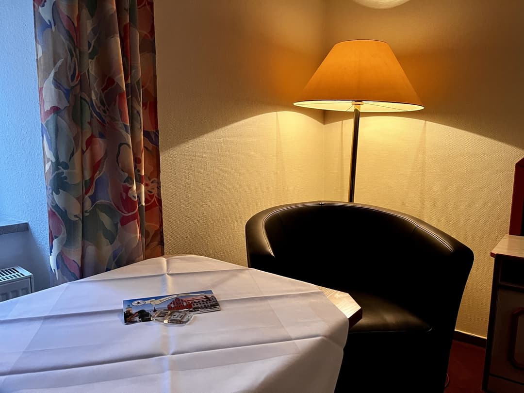 Das Hotelzimmer oberhalb des Ratskellers ist geräumig ausgestattet und bietet einen angenehmen Aufenthalt für zwei Personen.