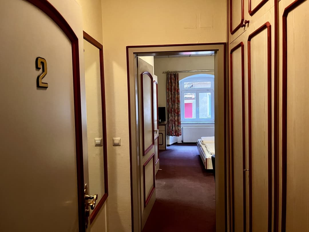 Das Hotelzimmer oberhalb des Ratskellers ist einfach ausgestattet und bietet einen angenehmen Aufenthalt für eine Person.